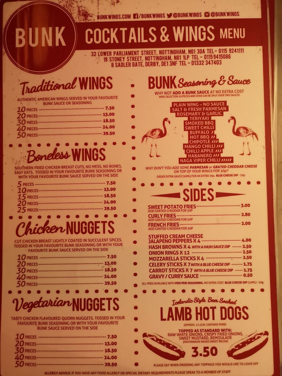Bunk 8 Sadler Gate Menu